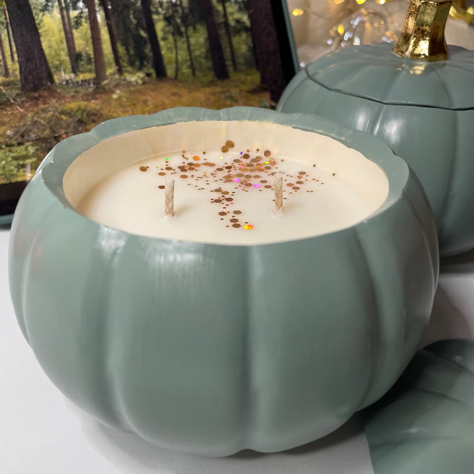 Entdecke unseren stilvollen großen Kürbis in Eukalyptus Grün der mit seinem eleganten Design und dem verführerischen Pumpkin Spice Duft für eine gemütliche Herbstatmosphäre sorgt. Perfekt als Dekoration oder kleines Geschenk, bringt dieser Kürbis Wärme und saisonale Stimmung in dein Zuhause.