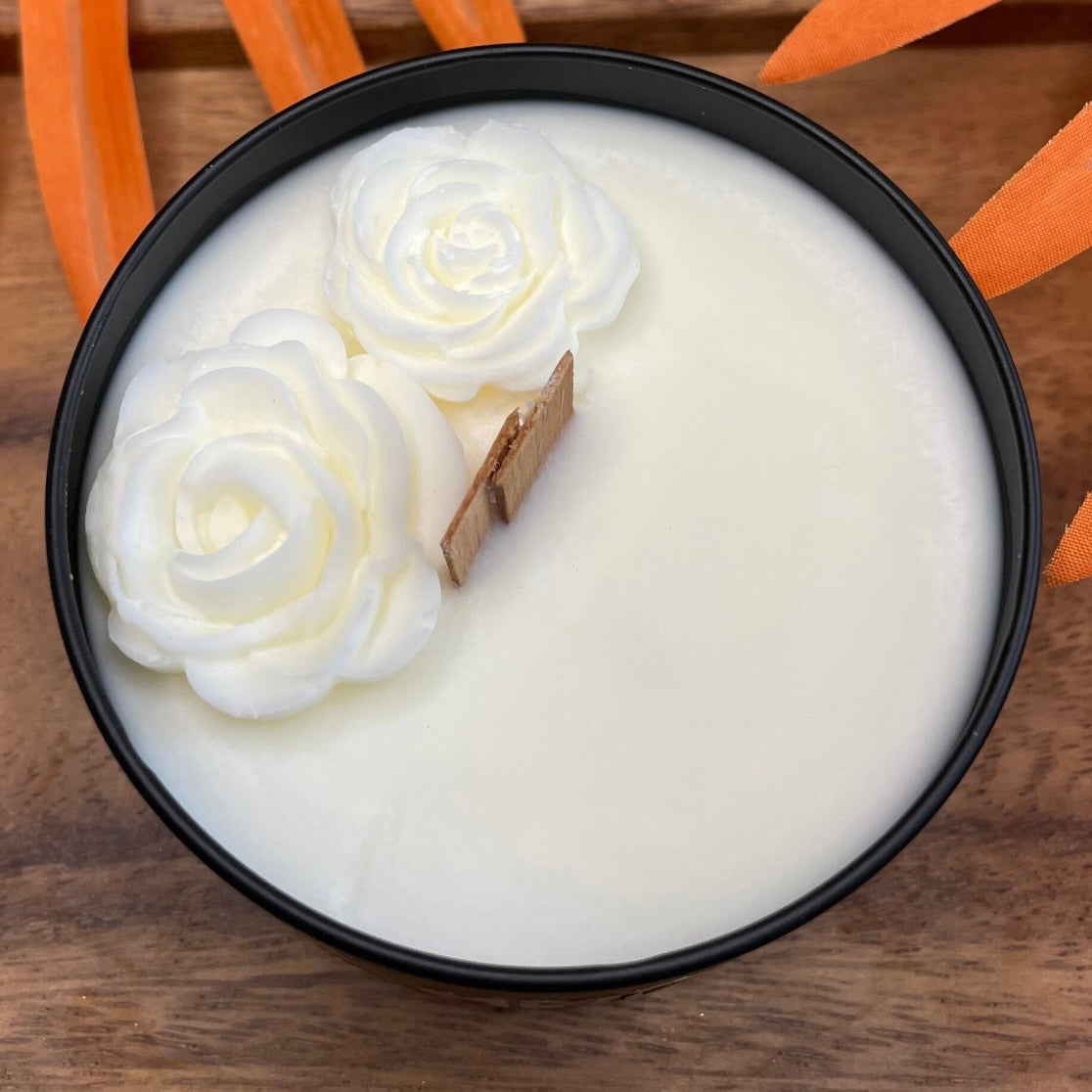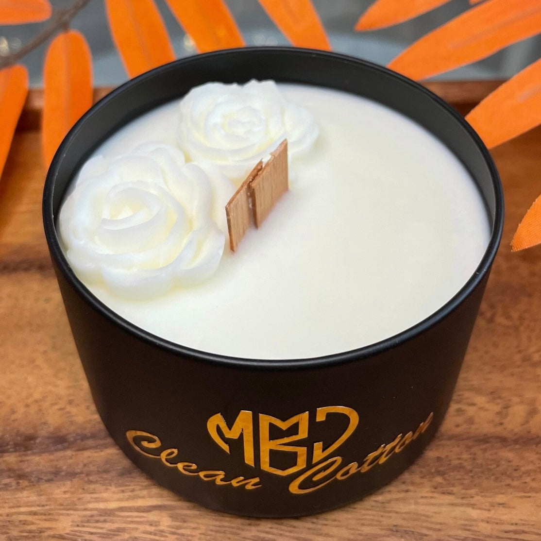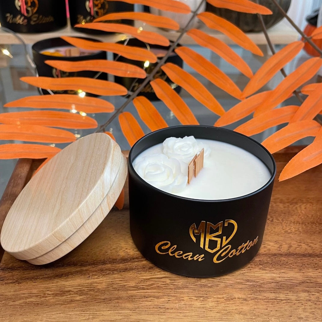 Diese wunderschöne Duftkerze im Behälter mit Deckel ist aus Sojawachs hergestellt.