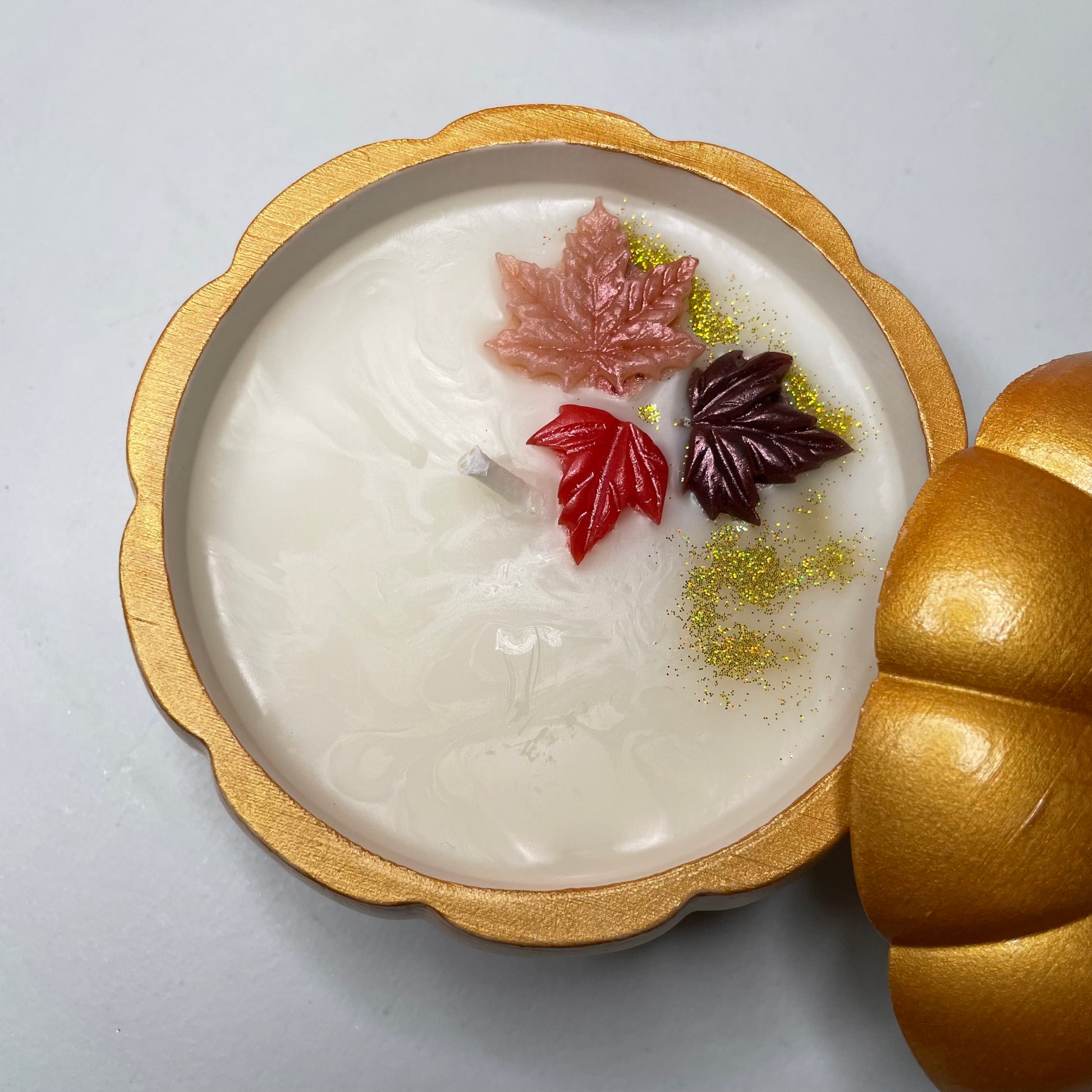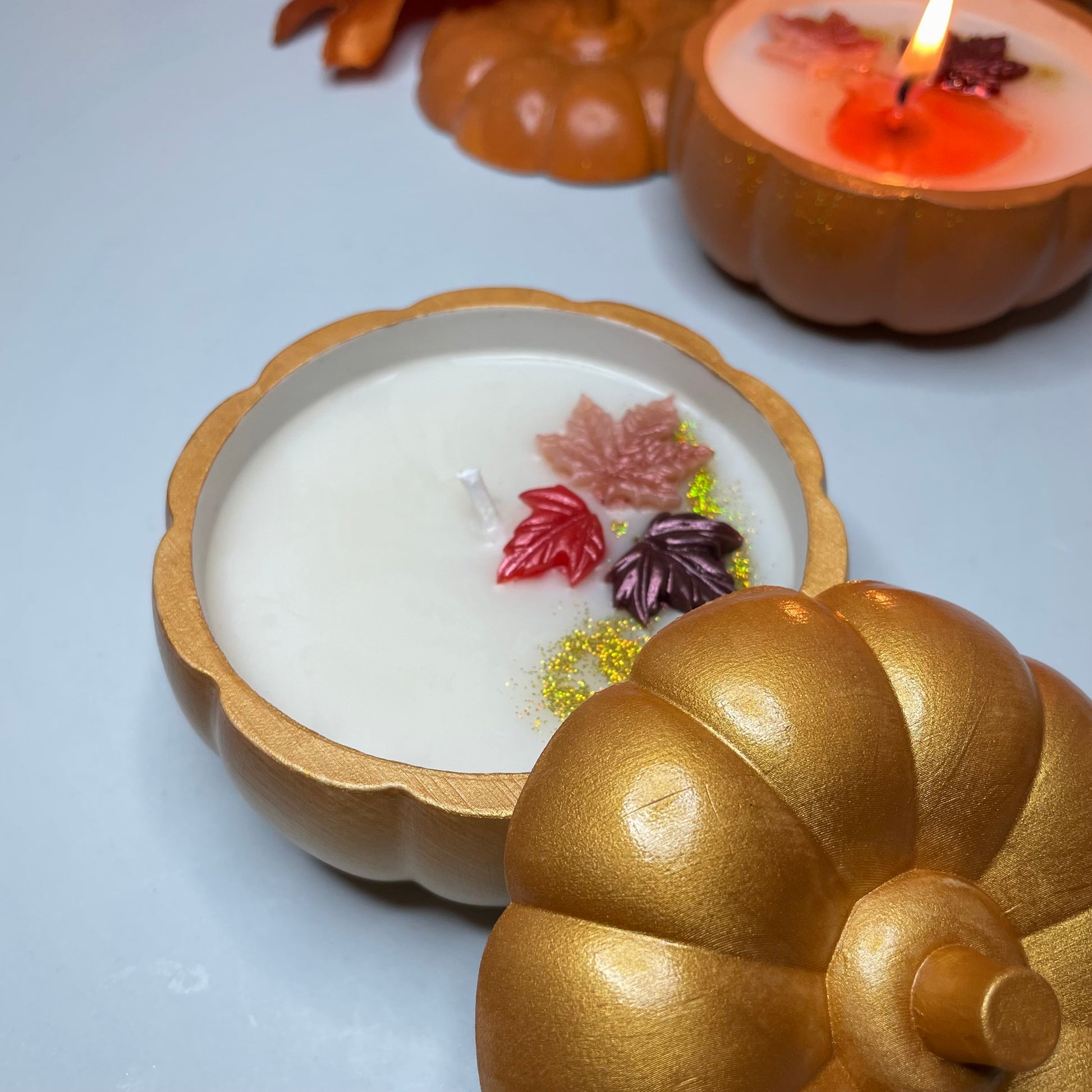 Entdecke unseren stilvollen großen Kürbis in Gold der mit seinem eleganten Design und dem verführerischen Walnut Maple Crumble Duft für eine gemütliche Herbstatmosphäre sorgt. Perfekt als Dekoration oder kleines Geschenk, bringt dieser Kürbis Wärme und Halloweenstimmung in dein Zuhause.