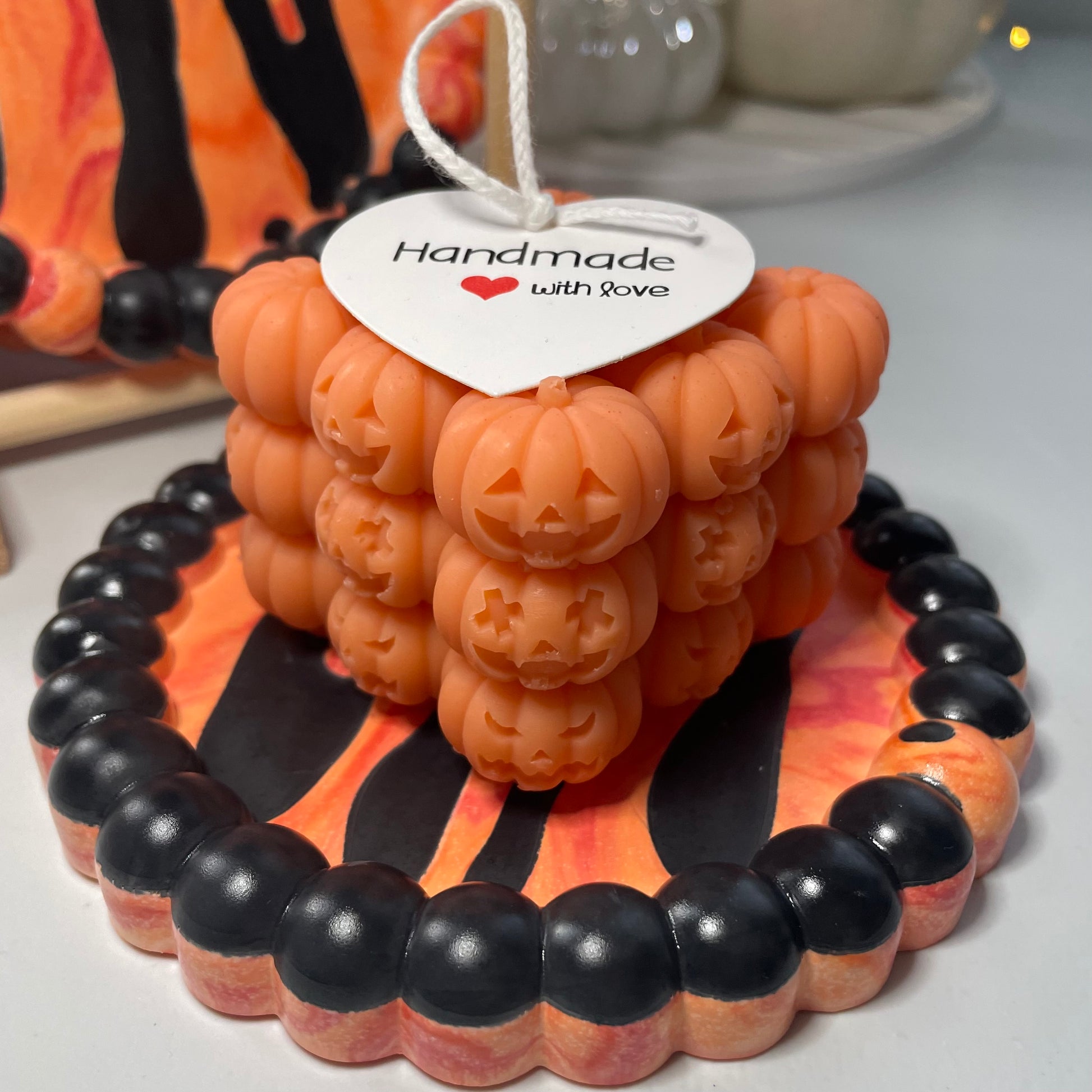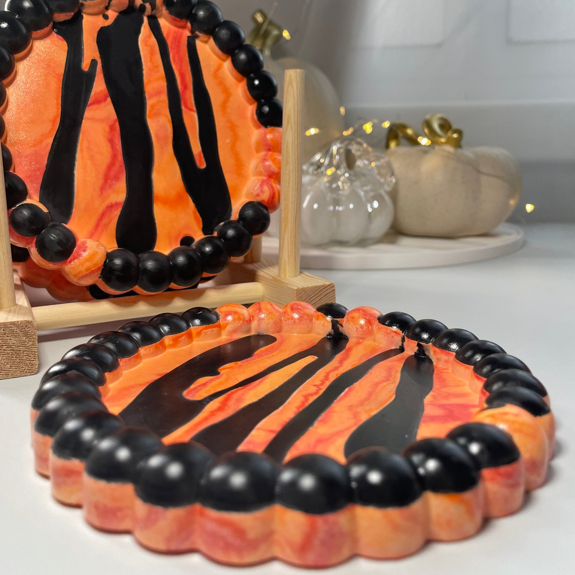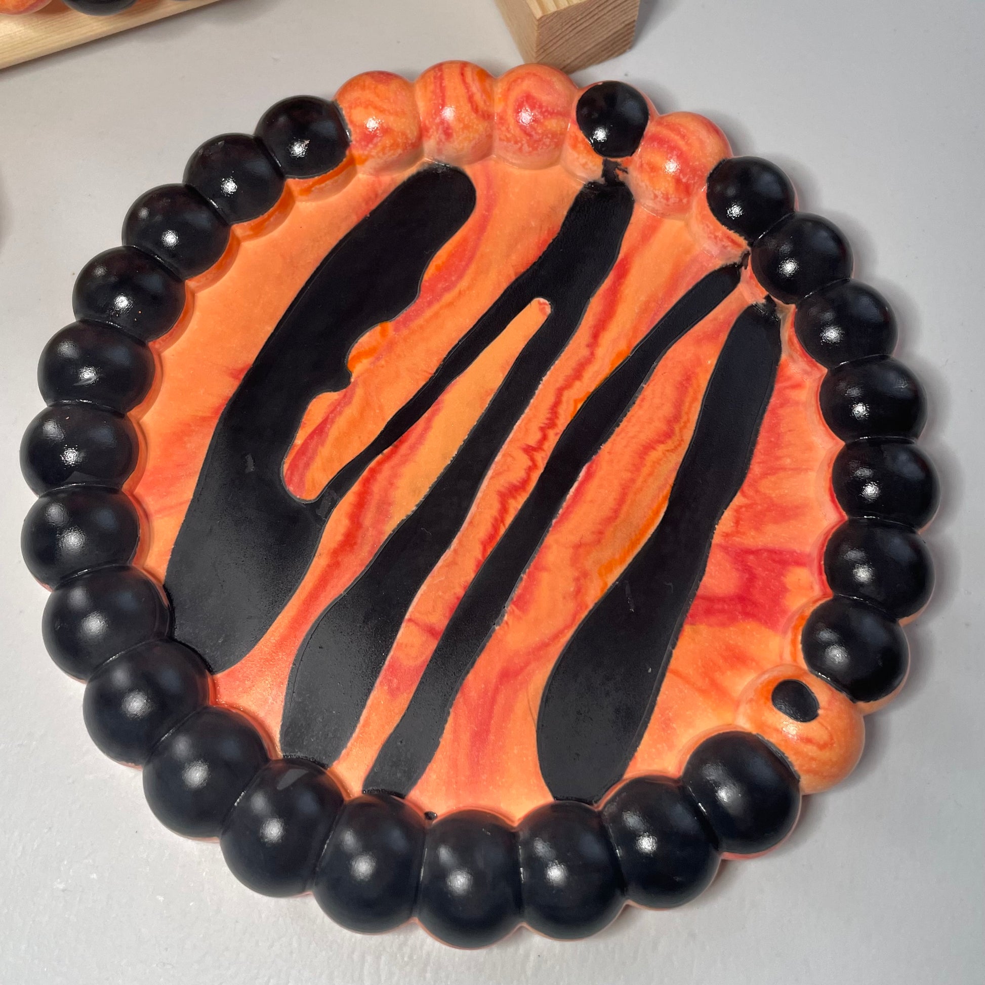 Das runde Tablett ist handgefertigt aus Keramik-Gießpulver. Sehr gut als Untersetzer für Kerzen, Schmuck und Co. geeignet. Kleine Bubble.