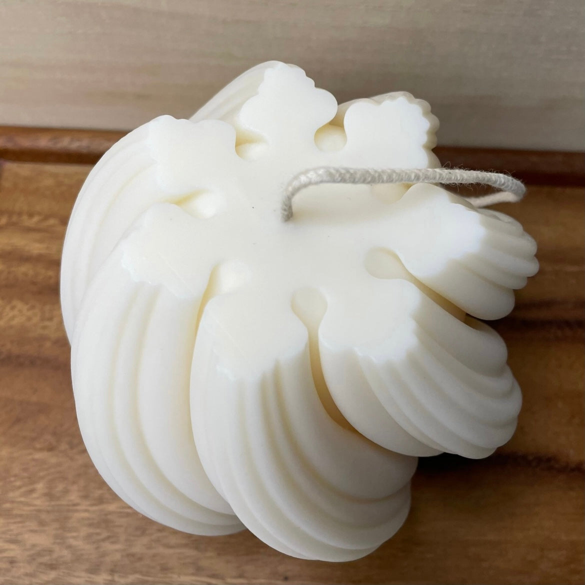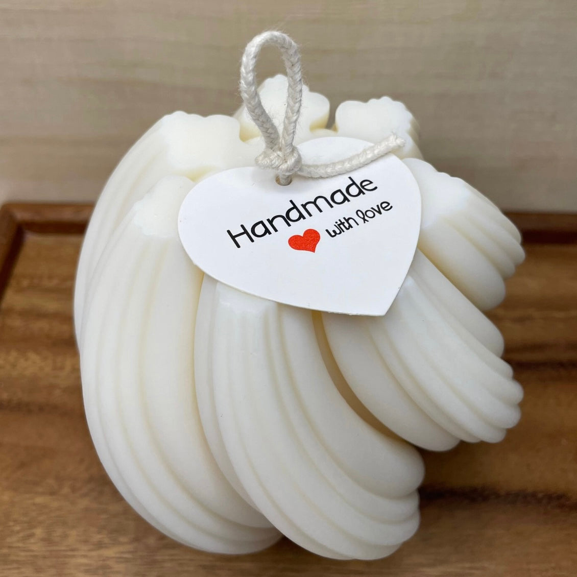 Diese Kerze ist aus Kokoswachs handgefertigt.