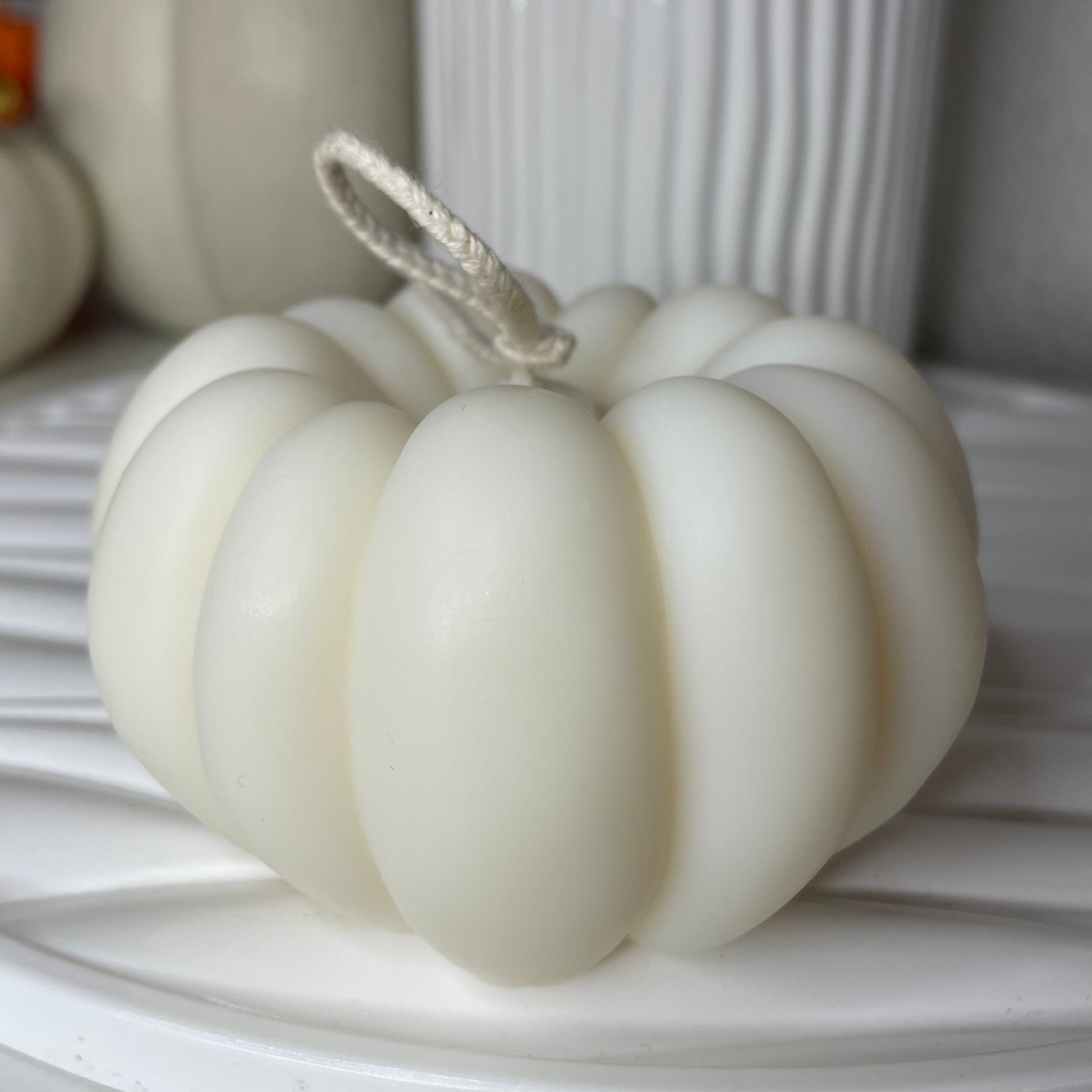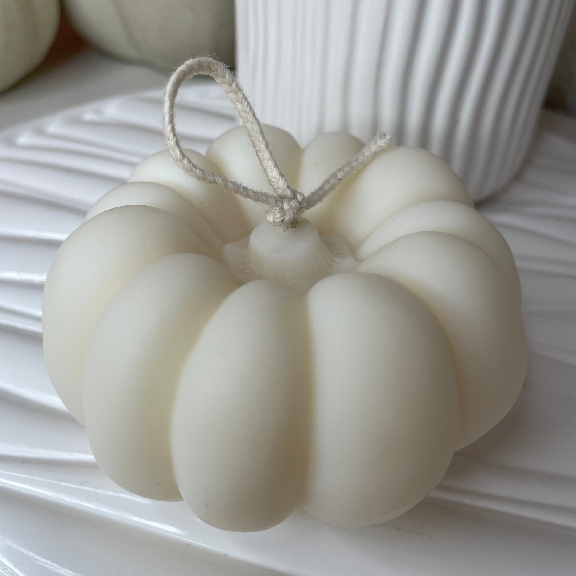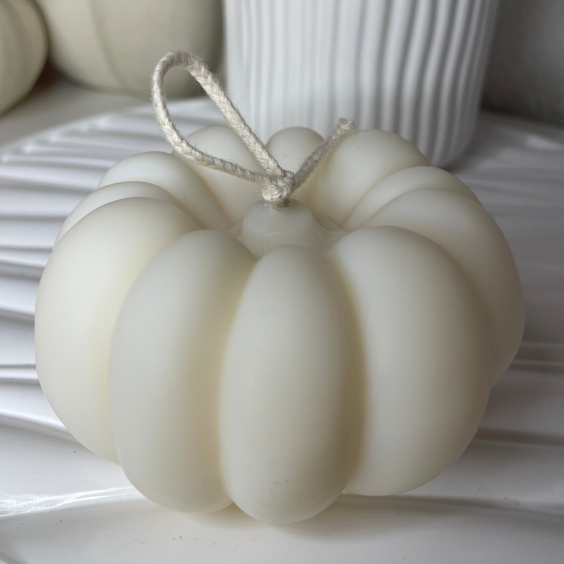 Eleganter Kürbis in Weiß. Diese Standkerze wurde aus Kokoswachs hergestellt. Hole den Herbst zu dir nach Hause. Ein Musthave für gemütliche Abende.