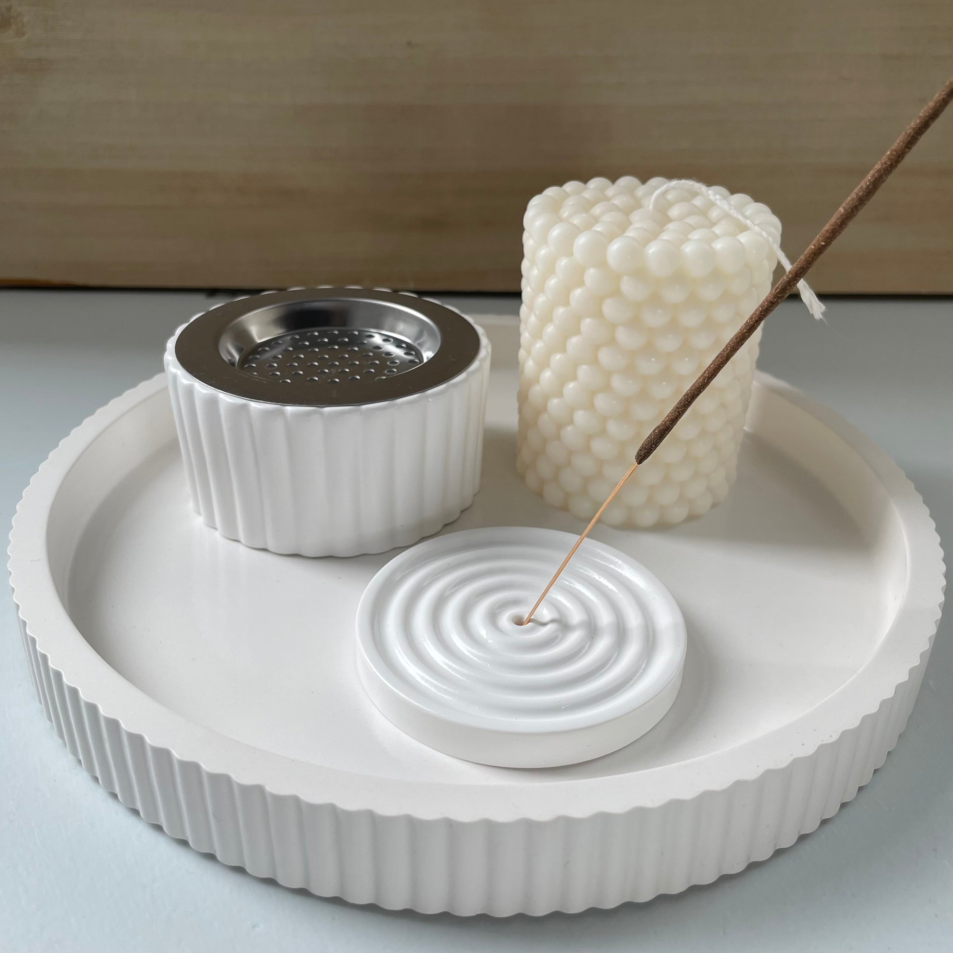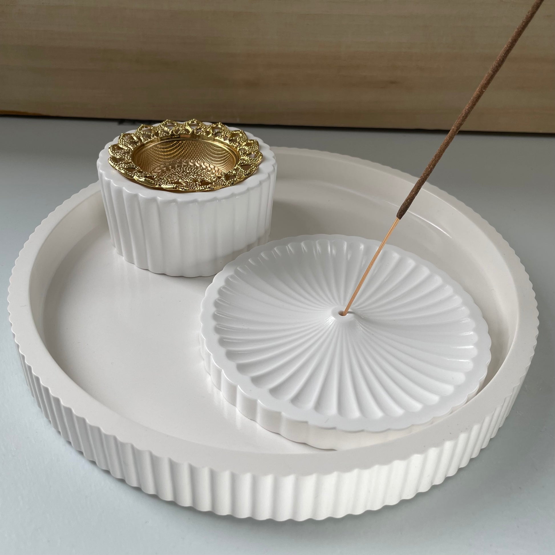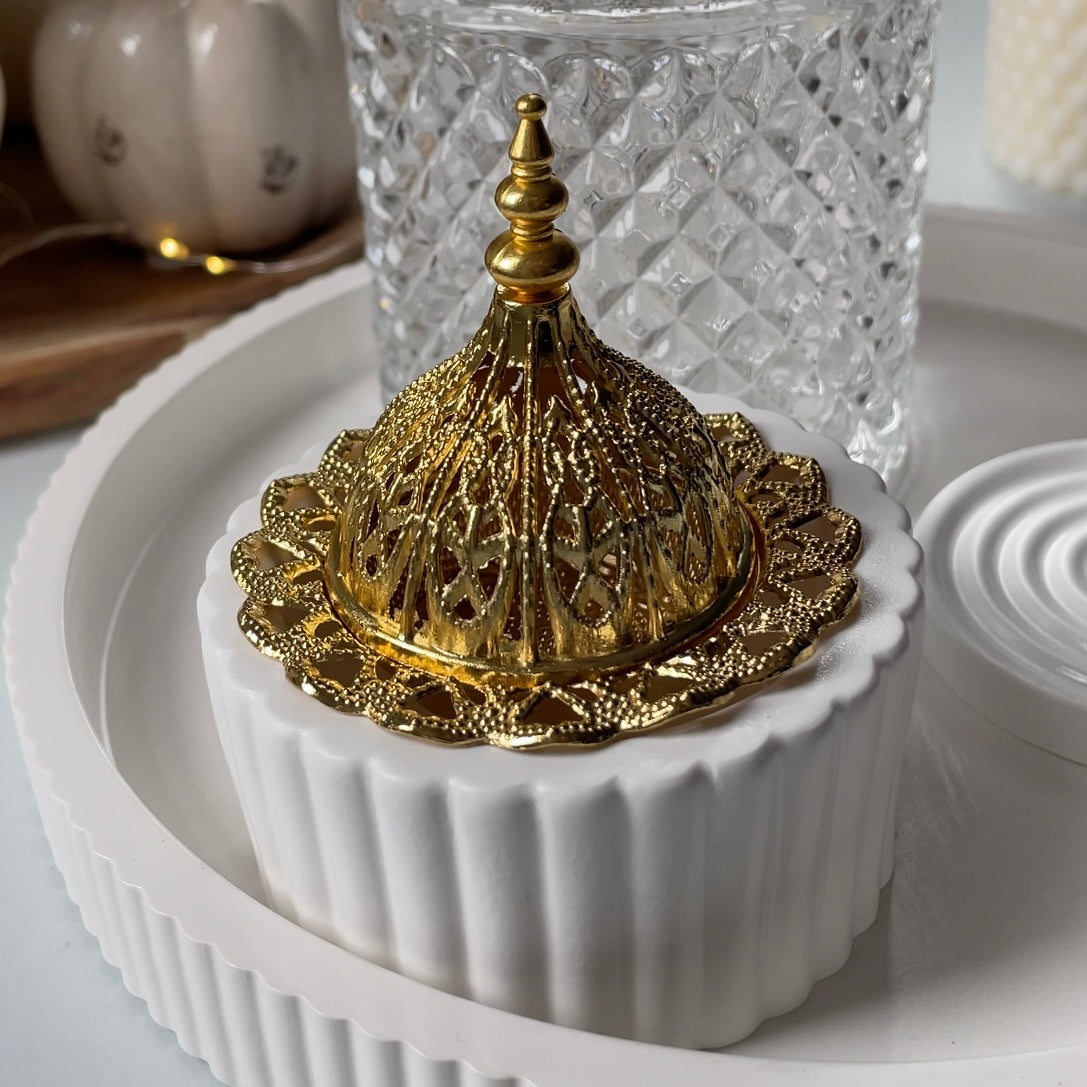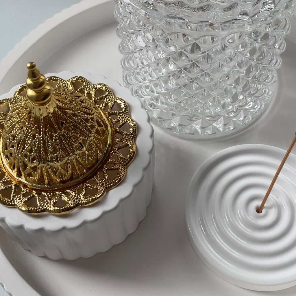 Entdecke unsere eleganten weißen Räucherbehälter mit edlen Akzenten in Gold oder Silber. Perfekt für eine stilvolle Atmosphäre, vereinen sie modernes Design mit praktischer Funktion. Ideal für entspannte Momente und besondere Anlässe!