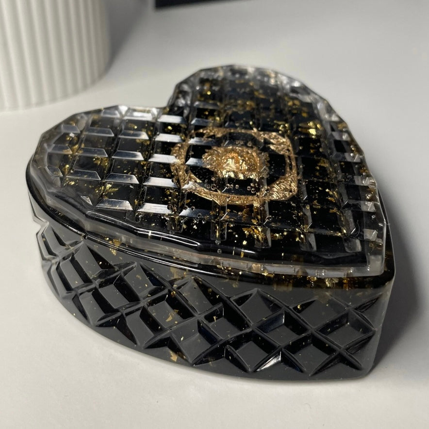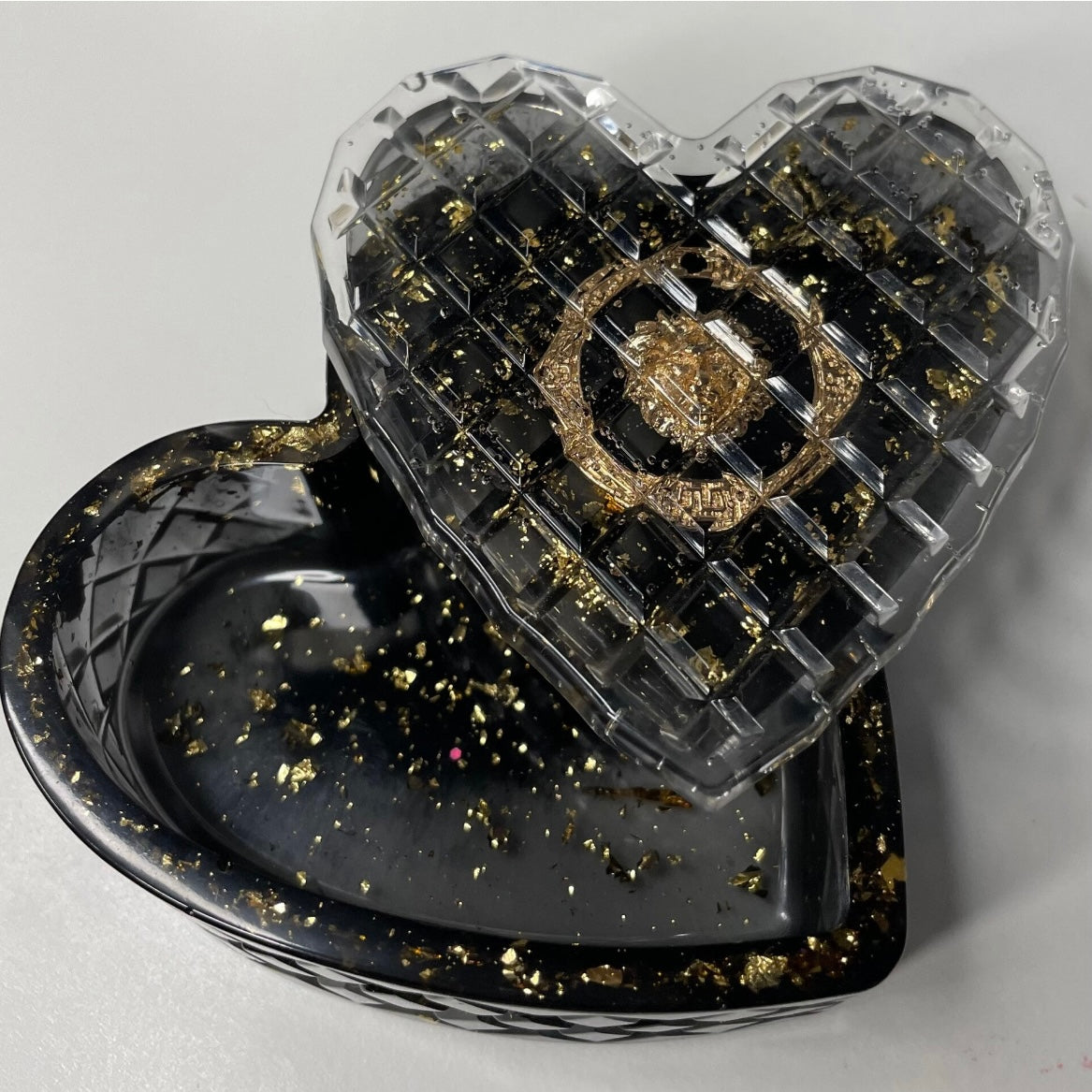 Die Schmuckschattule ist handgefertigt aus Resin. Mit goldenen Details und Glitzer.
