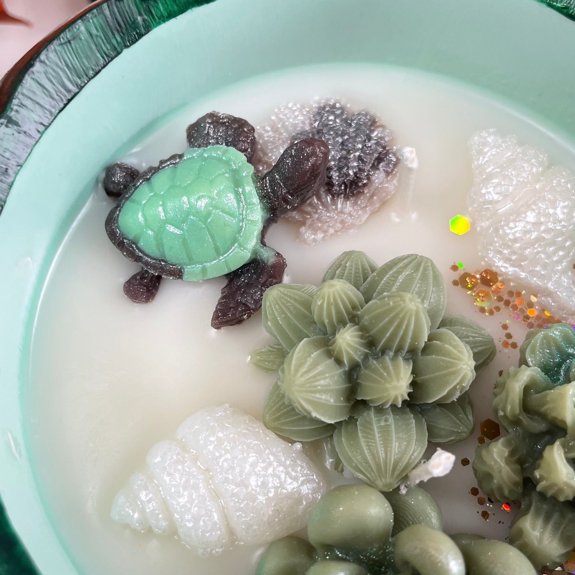 Die Kerze ist handgefertigt aus Jesmonite und Kokoswachs. Jesmonite ist ein auf Wasser basierendes, lösungsmittelfreies und umweltfreundliches Acrylharz. Wir verwenden 100% pflanzliches Kokoswachs, das aus nachwachsenden Rohstoffen in der EU hergestellt wird. Es ist vegan und tierversuchsfrei. Der Stiel ist mit Blattgold verziert.