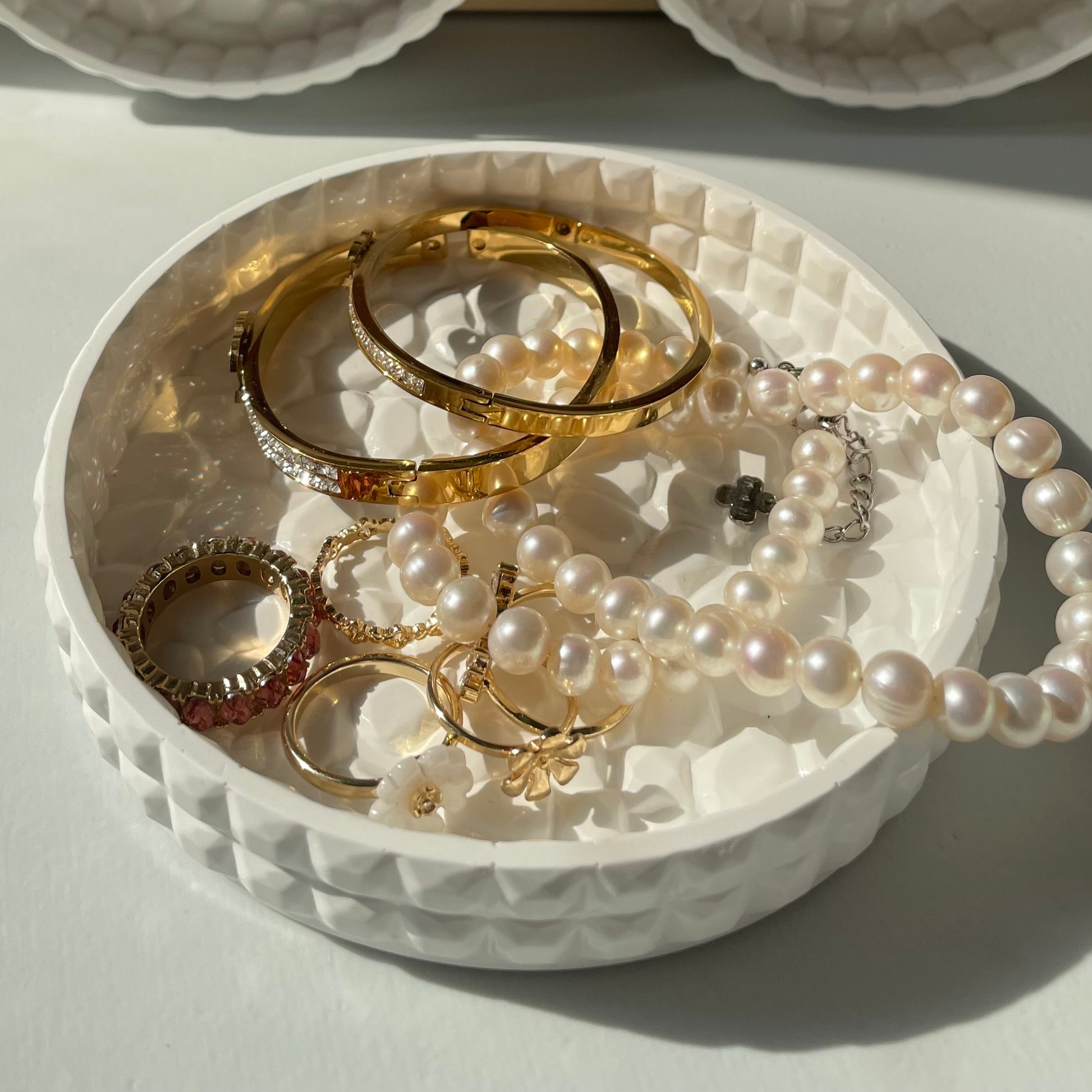 Du kannst dieses Tablett sehr gut mit anderen Produkten aus dem Shop kombinieren, wie zum Beispiel Kerzen. Siehe Beispielbilder. Schmuck nicht enthalten.