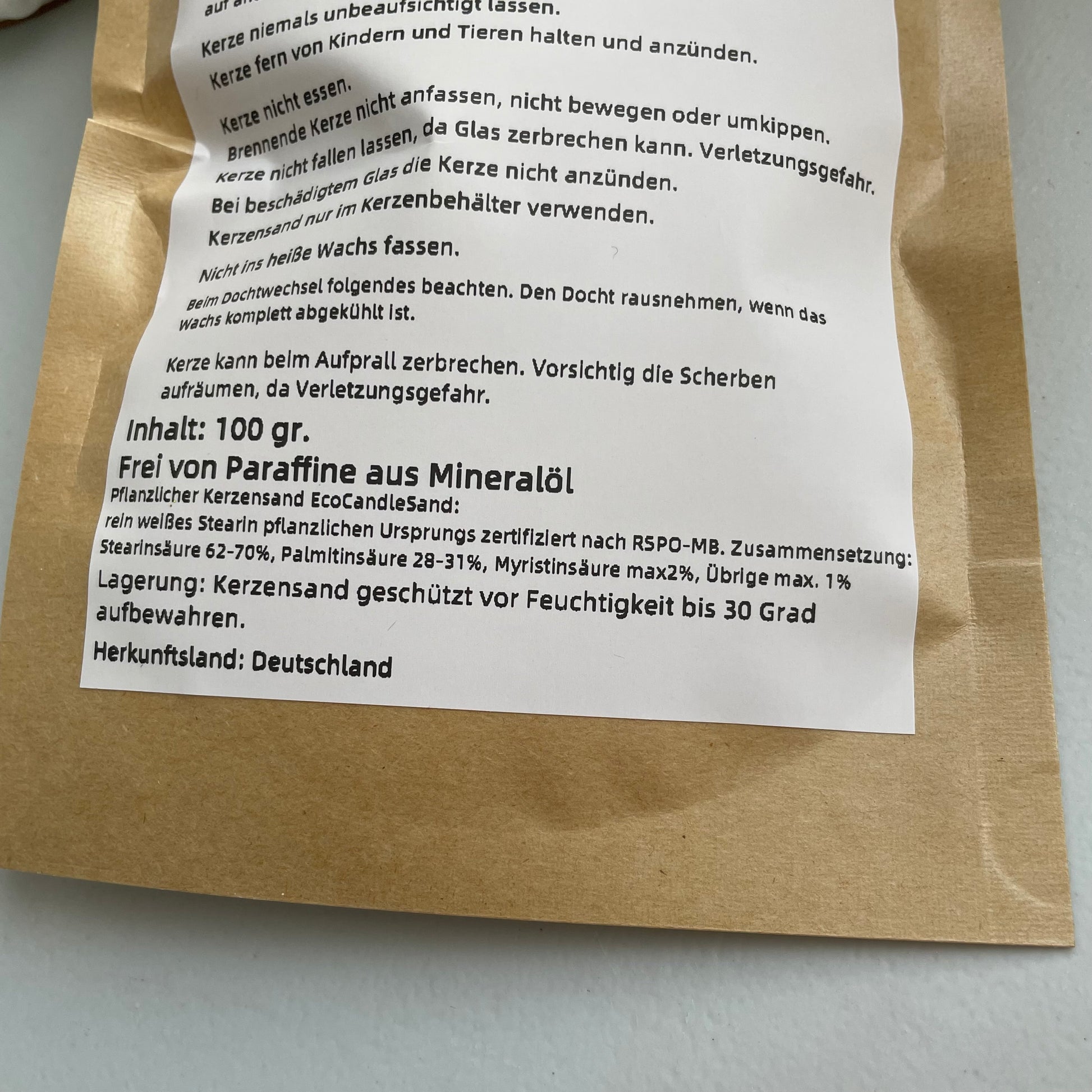 - Kerzensand nicht einatmen und auch nicht anderweitig verwenden