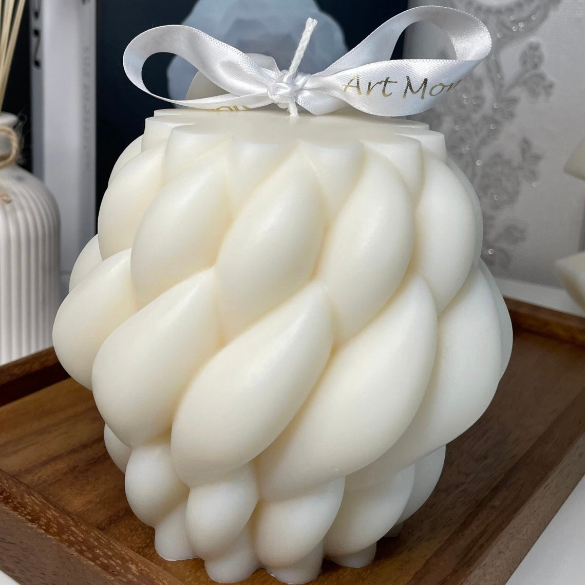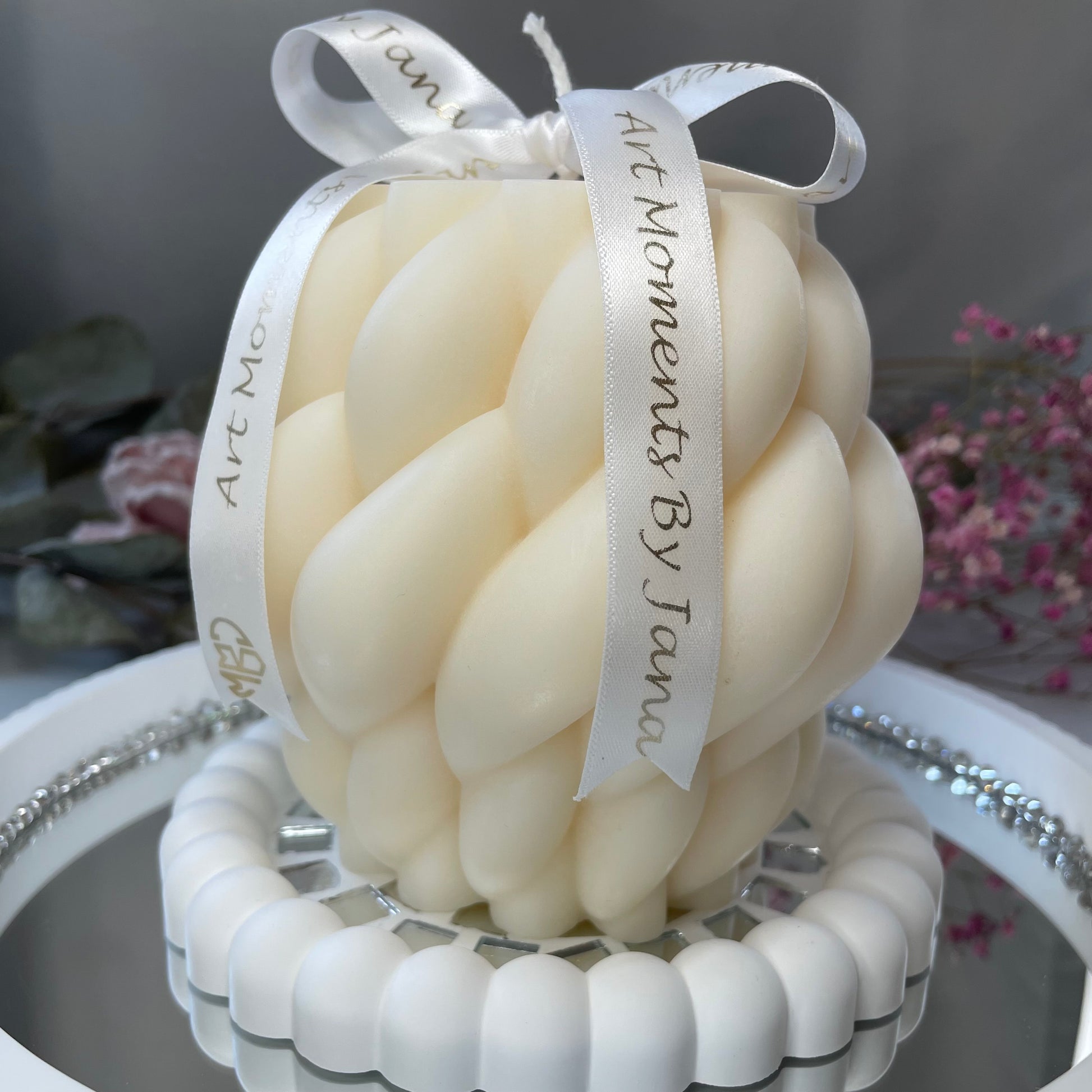 Diese Kerze ist handgefertigt aus Kokoswachs.