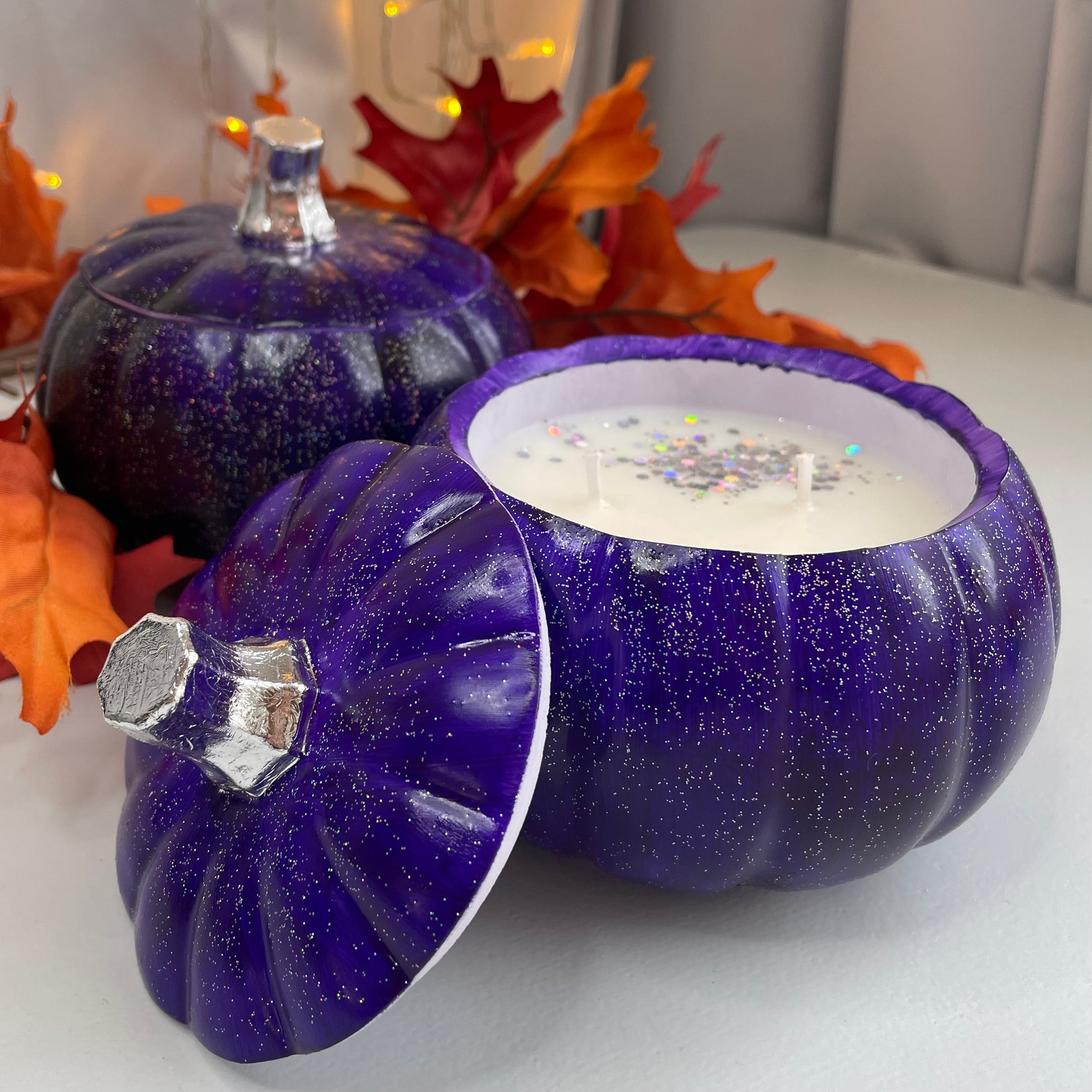 Entdecke unseren stilvollen großen Kürbis in Violett, der mit seinem eleganten Design und dem verführerischen Pumpkin Spice Duft für eine gemütliche Herbstatmosphäre sorgt. Perfekt als Dekoration oder kleines Geschenk, bringt dieser Kürbis Wärme und saisonale Stimmung in dein Zuhause.